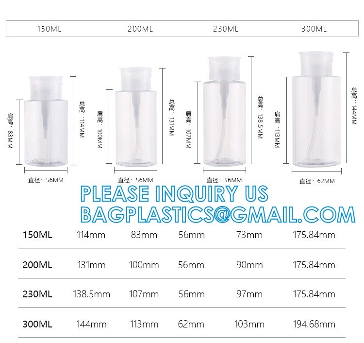 손톱 제광액 물병, 펌프 술 분배기, 메이크업 아세톤 용기, 세트 피부 관리 패키징